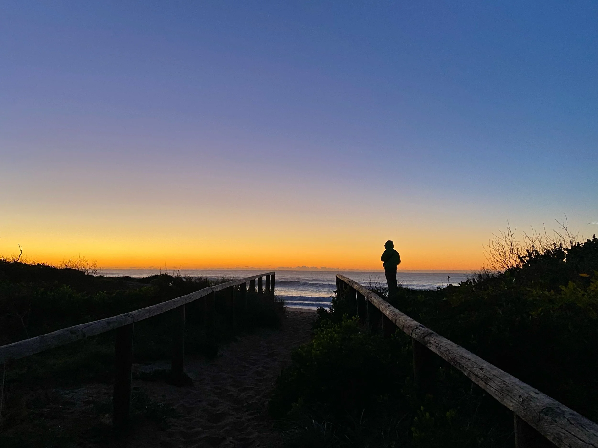 冬の寒い日は海に入る前に熱々のエスプレッソで体を温めながら、僕が一番大好きな時間の空の色の移り変わりを満喫する。